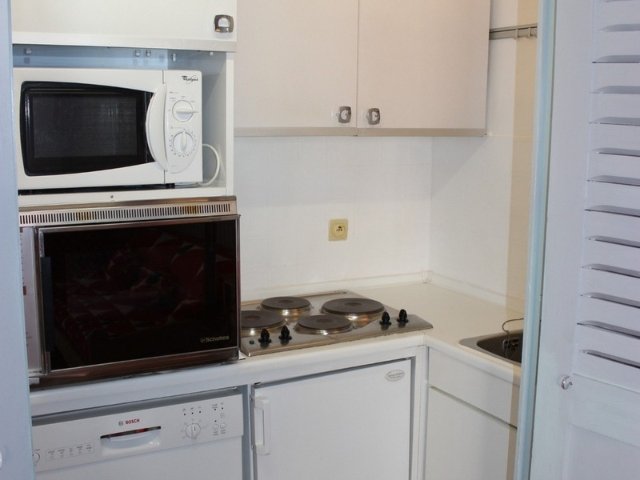 - Кухненски бокс: стъклокерамични котлони, фурна, микровълнова фурна, хладилник, съдомиялна машина