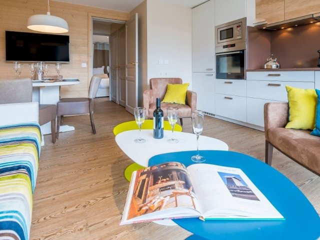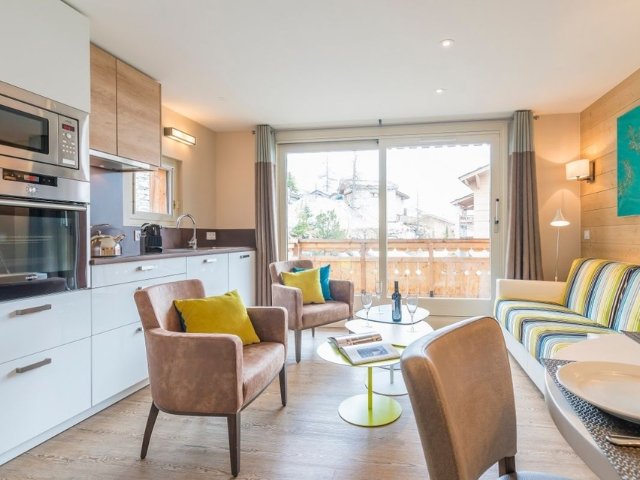 Апартамента се намера в Les Chalets Du Jardin Alpin. Това е 4-звезден апартхотел, който предлага уютни и просторни апартаменти с напълно оборудвани кухни, собствена баня и тоалетна. Гостите могат да се възползват от директен достъп до ски пистите, което осигурява лесен достъп до зимни забавления. Хотелът предлага също така удобства като частен паркинг за своите посетители.